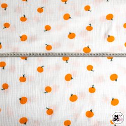Muślin druk cytrusy drobne pomarańcze DOUBLE GAUZE wz1161