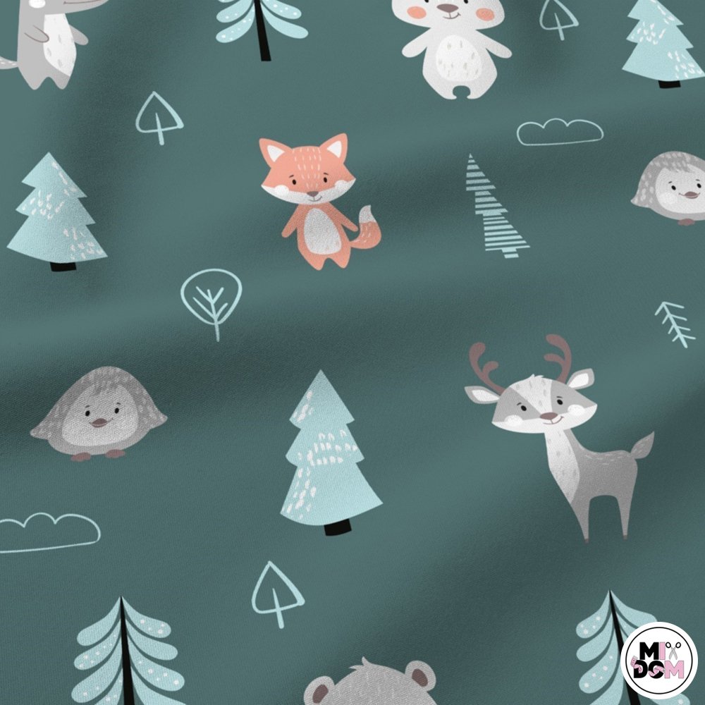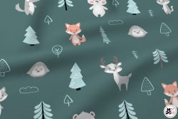 Zwierzątka z drzewami na szałwiowym tle wz1831