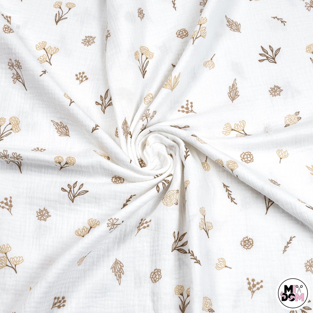 Muślin gałązki beżowe M DOUBLE GAUZE wz1110